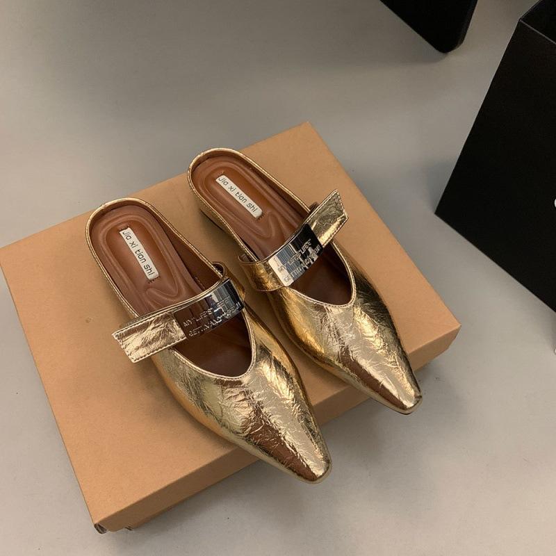 2025 Весна и Осень Новая Мода Универсальные Шлепанцы Баотоу Женская Уличная Обувь Внутреннее Увеличение Высоты Полушлепанцы Ленивая Обувь Мюли 39 золотой