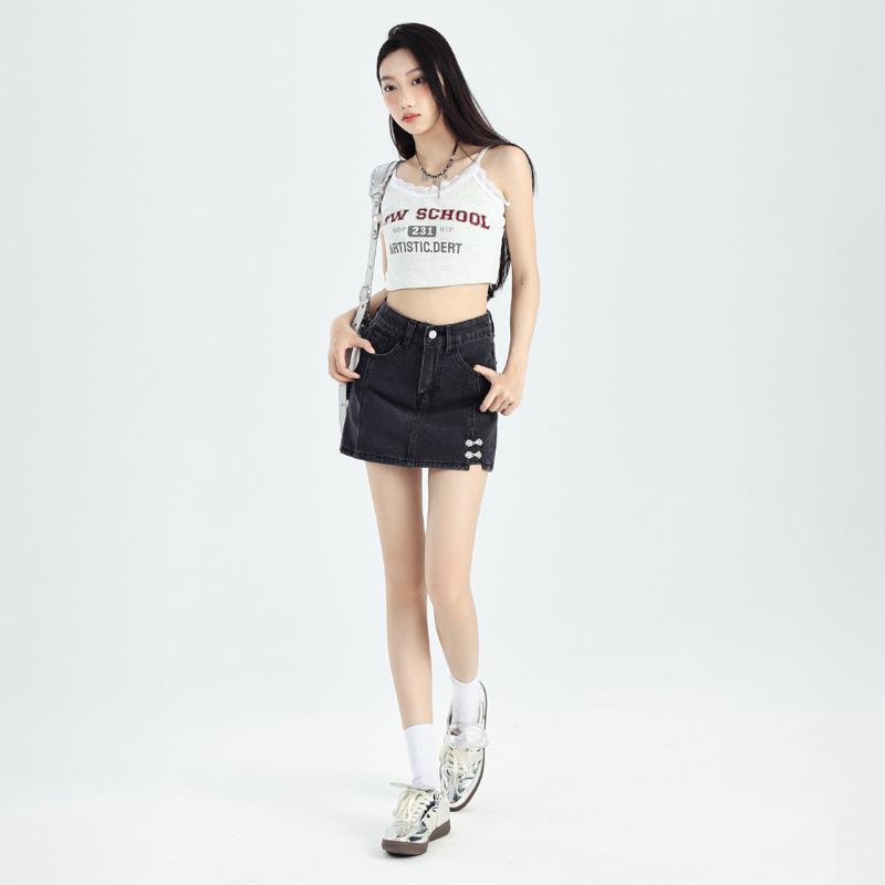 2025 Джинсовая мини-юбка А-силуэта с высокой талией - Женская трендовая летняя облегающая универсальная юбка Triple Extra Large
