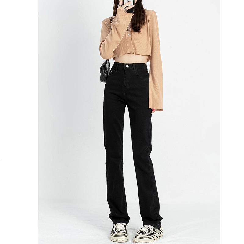 2025 Женские джинсы с высокой посадкой, черные, прямого кроя – Высокие, стройнящие, очень длинные, модные брюки-швабры 2XL чёрный