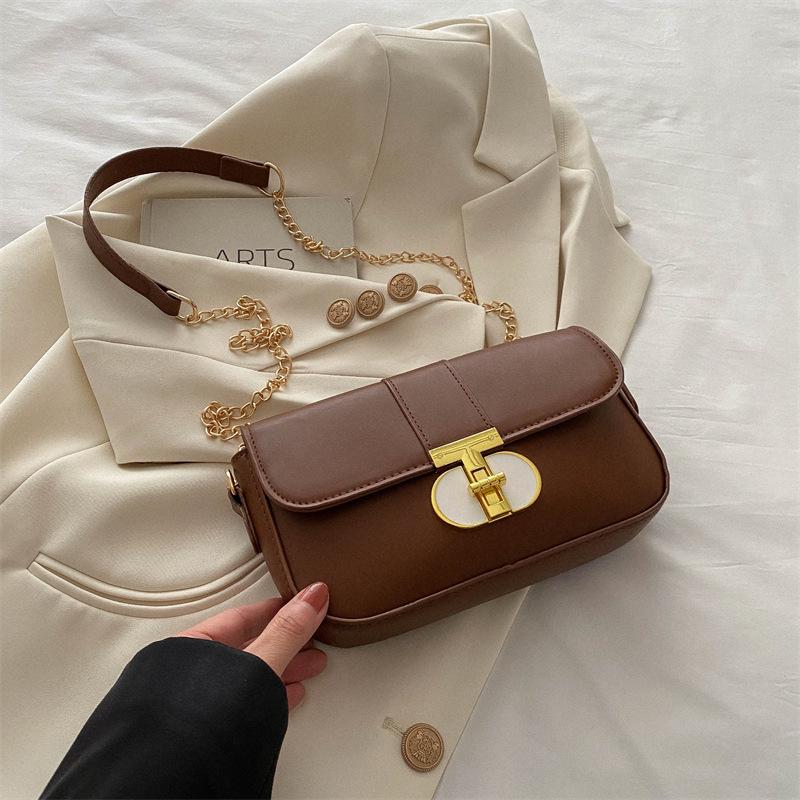 2025 Корейская версия темпераментный простой замок сумка через плечо мессенджер универсальная ins весна и лето новая цепочка маленькая квадратная сумка иностранный стиль коричневый