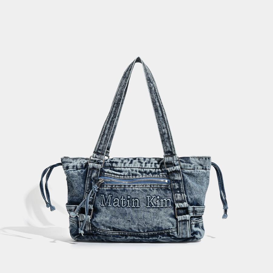 2025 Корейский стиль Винтажная вываренная джинсовая сумка-тоут через плечо в форме полумесяца для женщин синий