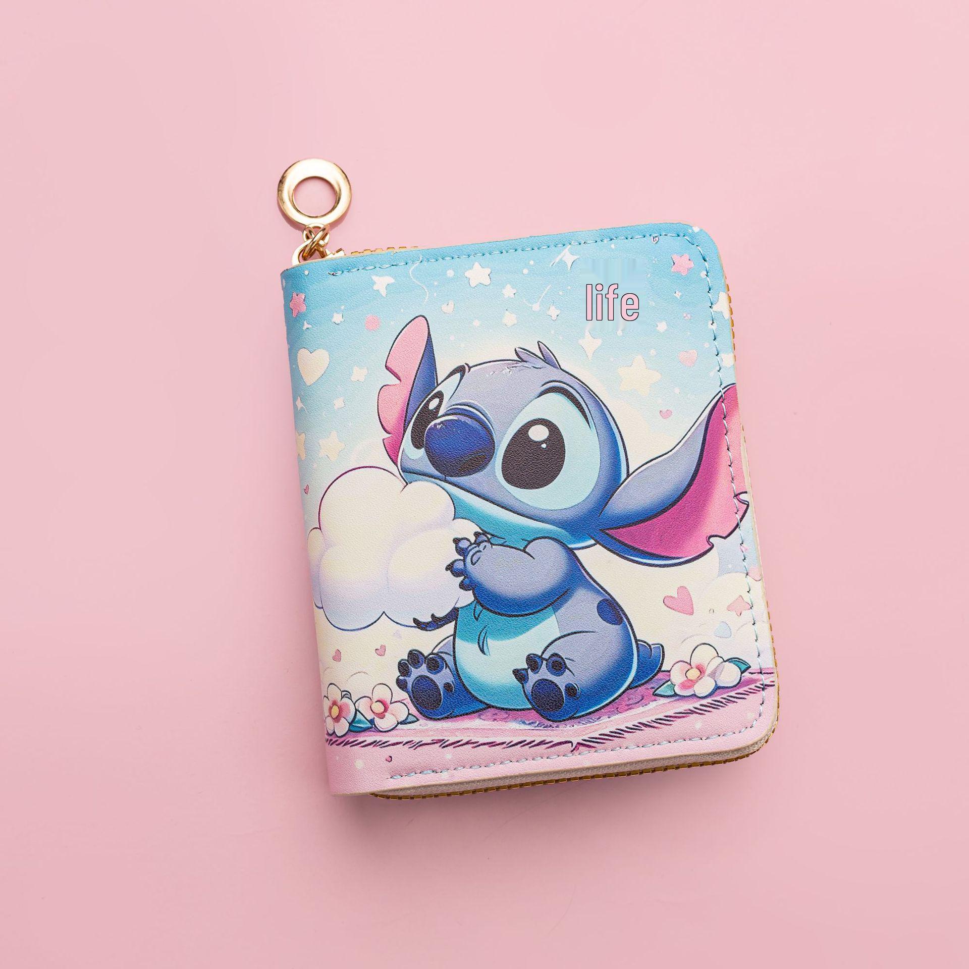 2025 Кошелек из ПУ в мультяшном стиле Стич: Унисекс Короткий Кошелек для Монет на Молнии и Держатель для ID-карты 11 x 8.5 x 2 cm