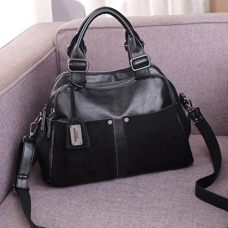 2025 Матовая коровья кожа Многосекционная сумка-подушка - Женская универсальная сумка на плечо и через плечо чёрный