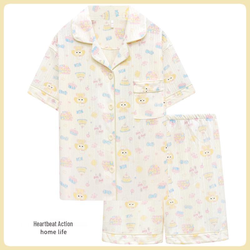 2025 Милая мультяшная пижама с печеньем из масла – Женская летняя одежда для отдыха из чистого хлопка с коротким рукавом XL