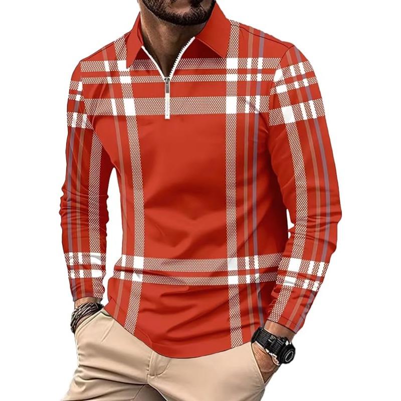 2025 Мода и Досуг Мужская Рубашка-поло на молнии с длинным рукавом Отложной воротник Офисная работа Цифровая печать 3XL коричневый