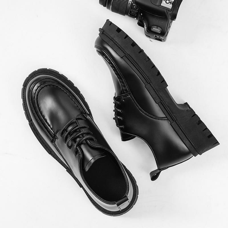 2025 Мужские черные повседневные кожаные туфли в британском стиле – Осенние трендовые формальные с дизайном «большая голова» 39 чёрный