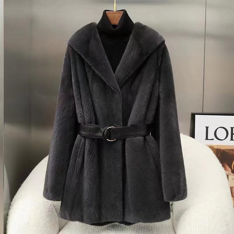 2025 Новая Меховая Осень и Зима Толстая Теплая и Модная Меховая Шуба Женская Большой Воротник Искусственный Мех Норки Пальто One size fits all серый