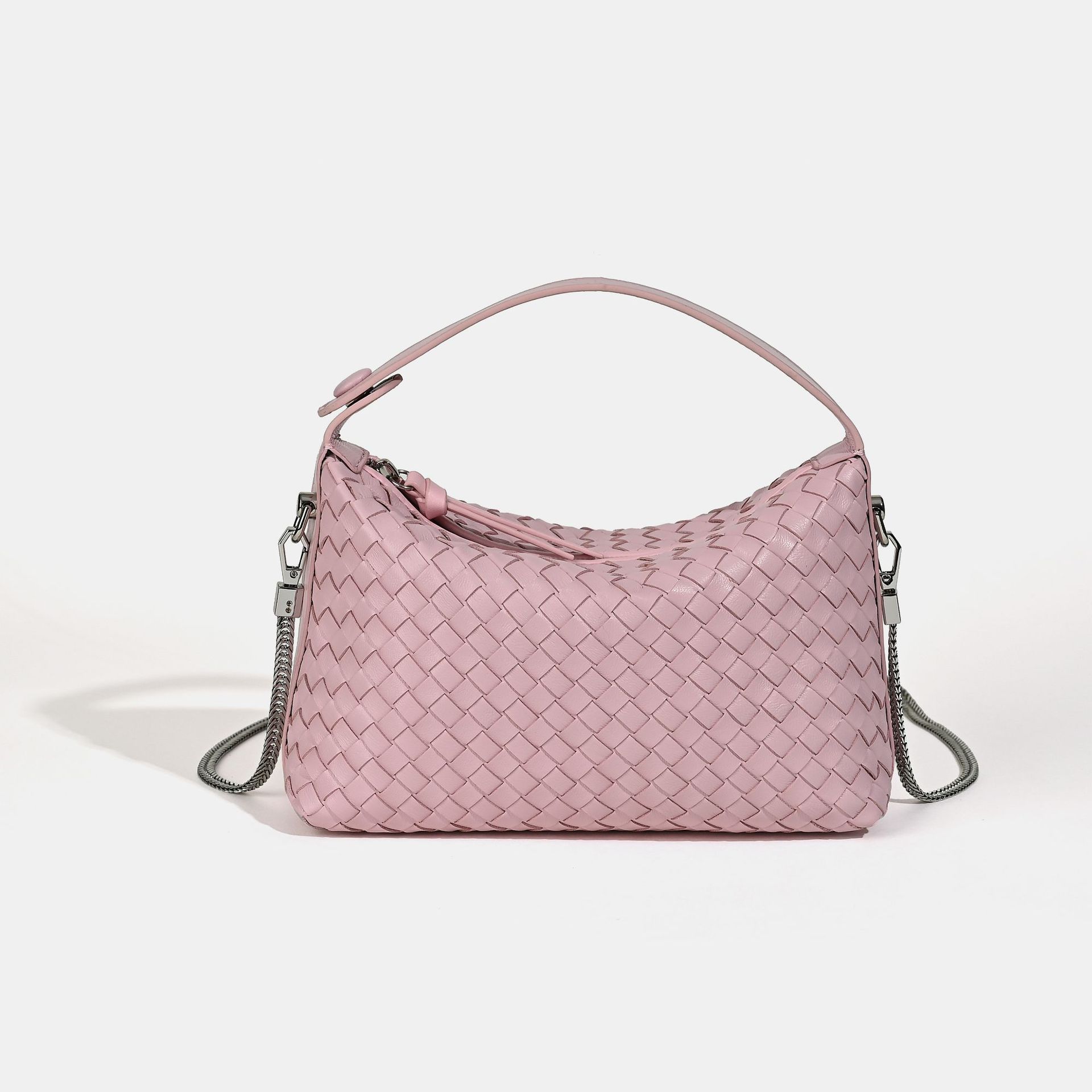 2025 Новая Нишевая Сумка-тоут из Овчины Женская Сумка Плетеная Сумка через Плечо Простая Повседневная Универсальная Сумка Однотонная 22.5x10x16cm розовый