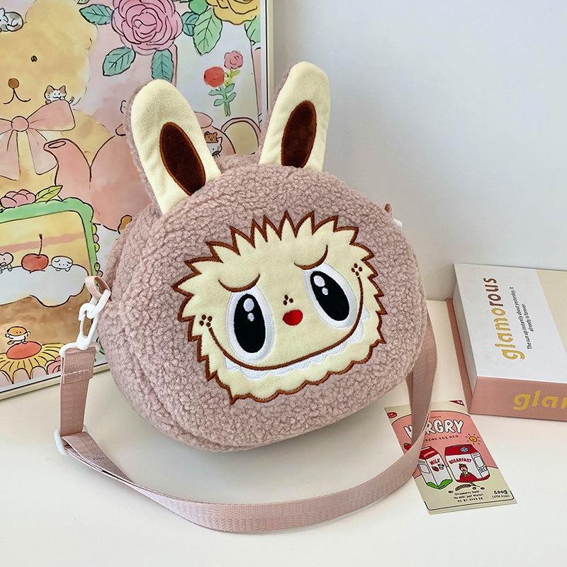 2025 Новая Популярная Сумка через Плечо Bubble Mart Большой Вместимости Мягкая на Ощупь Короткий Плюш Детские Сумки через Плечо Уродливый Милый Мультяшный Детский Мешок для Хранения Сумка Кроссбоди детские розовый