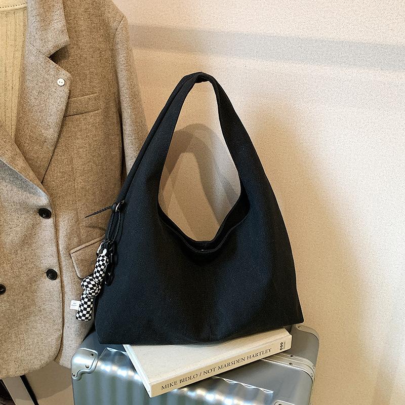 2025 Новая осенняя повседневная сумка-багет на плечо, стильная, ретро, универсальная, большой вместимости, для поездок на работу no pendant чёрный