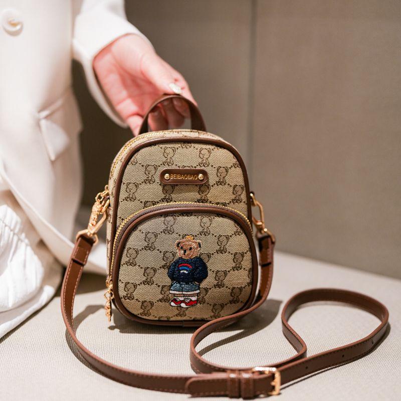 2025 Новая сумка с рисунком маленького медвежонка, вышитая парусиновая сумка для мобильного телефона, модная сумка через плечо на каждый день, легкая маленькая сумка Khaki