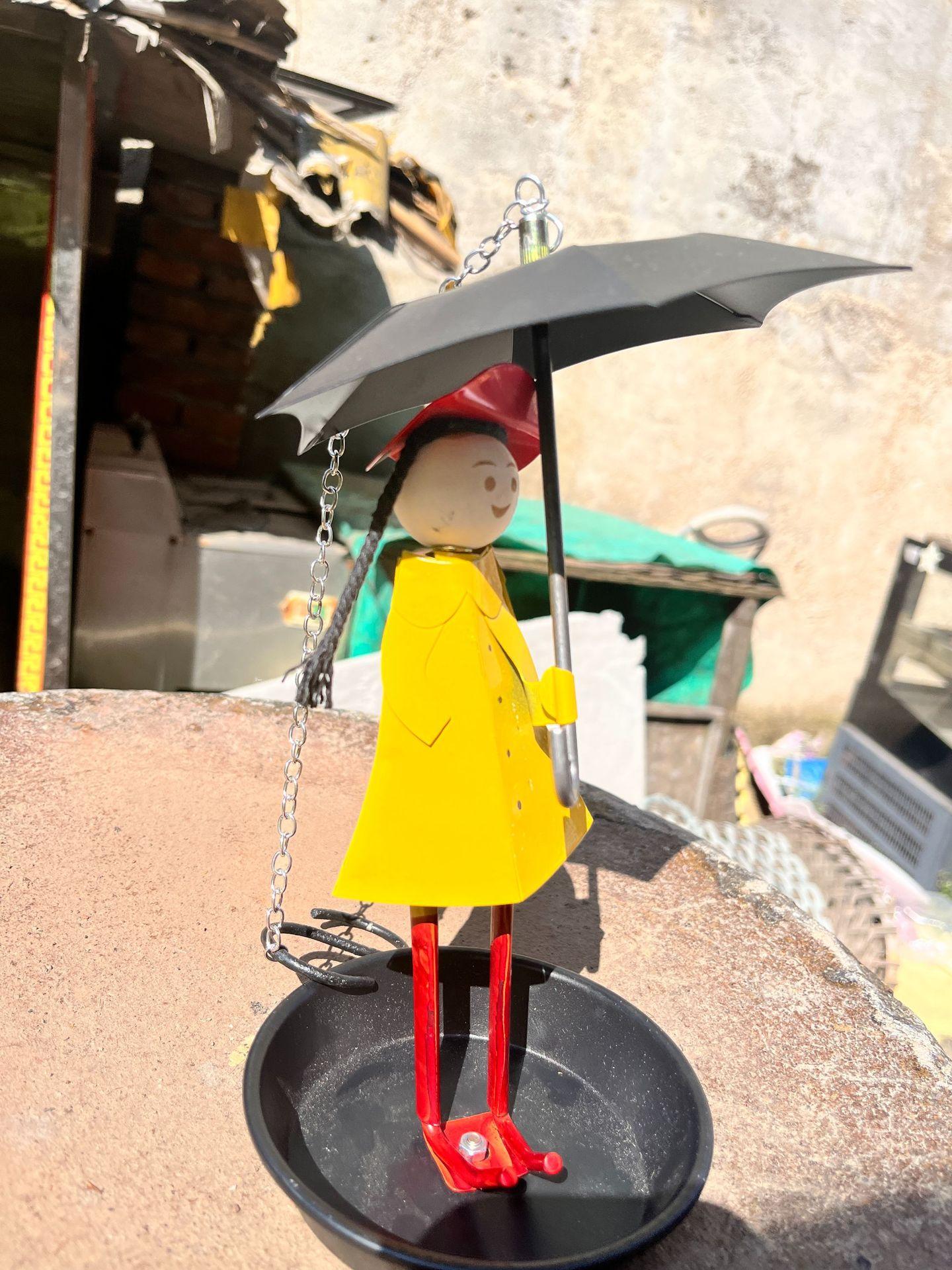 2025 Новый Зонт Желтый Маленькая Девочка Кормушка Для Птиц Металлическая Подвесная Кормушка Уличная Железная Ручная Кормушка Для Колибри