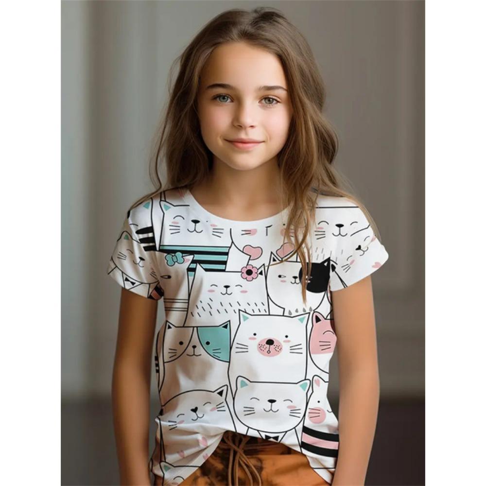 2025 Повседневные футболки Одежда для девочек Новые забавные футболки с 3D-принтом для девочек Модные вечерние топы с короткими рукавами Футболка 160