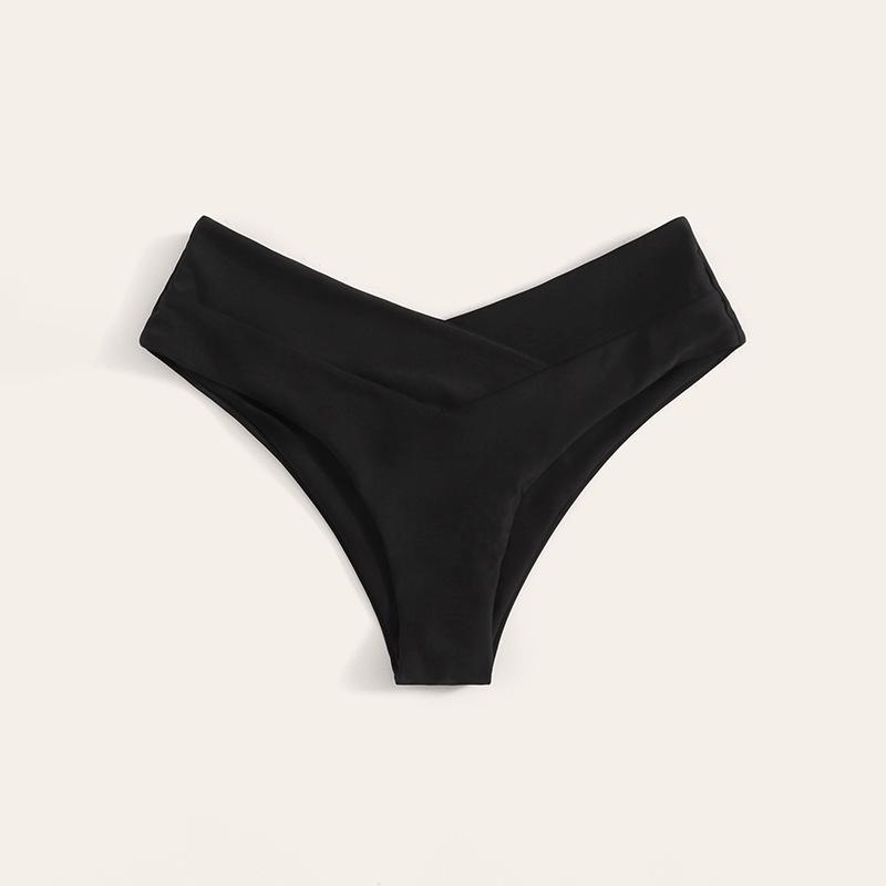 2025 Ретро Бикини-Трусы с Завышенной Талией Треугольник - Сексуальные Однотонные Женские Плавки для Плавания Small чёрный