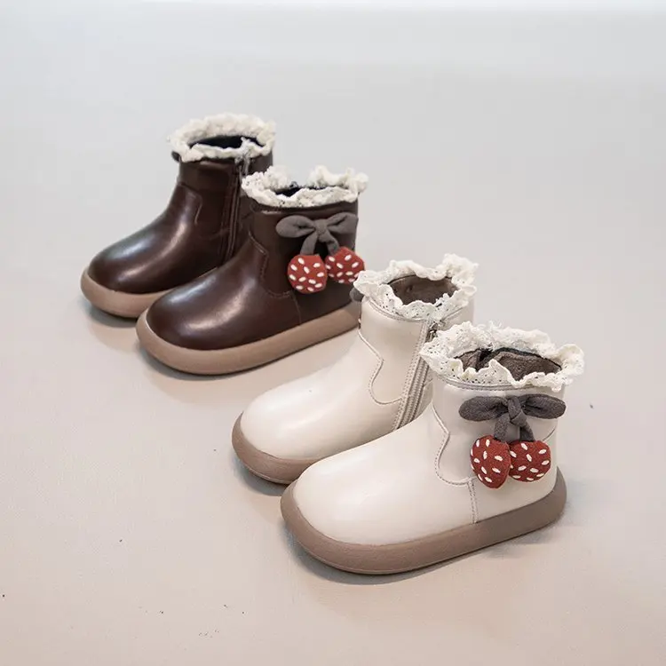 2025 Сапоги для девочек, зимняя теплая меховая обувь, детские кожаные ботильоны для девочек 1–6 лет, детские нескользящие зимние сапоги коричневого, черного цвета