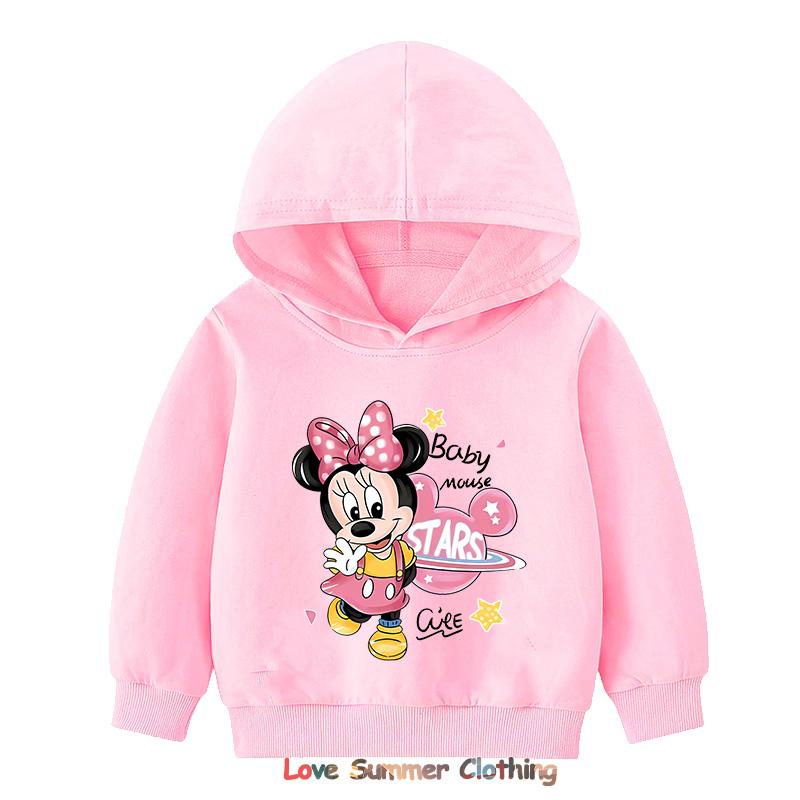 2025 Толстовка Минни Розовая Одежда для девочек 4-14 лет Микки Милый Пуловер Маленькие мальчики и девочки Пуловер Комфортные топы Полиэстер 100