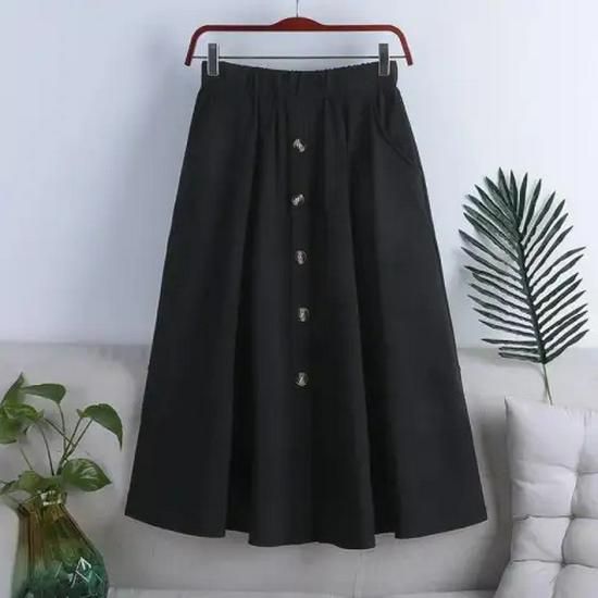 2025 Юбка миди А-силуэта с завышенной талией и эффектом похудения - Универсальная эластичная талия с большим клешем M