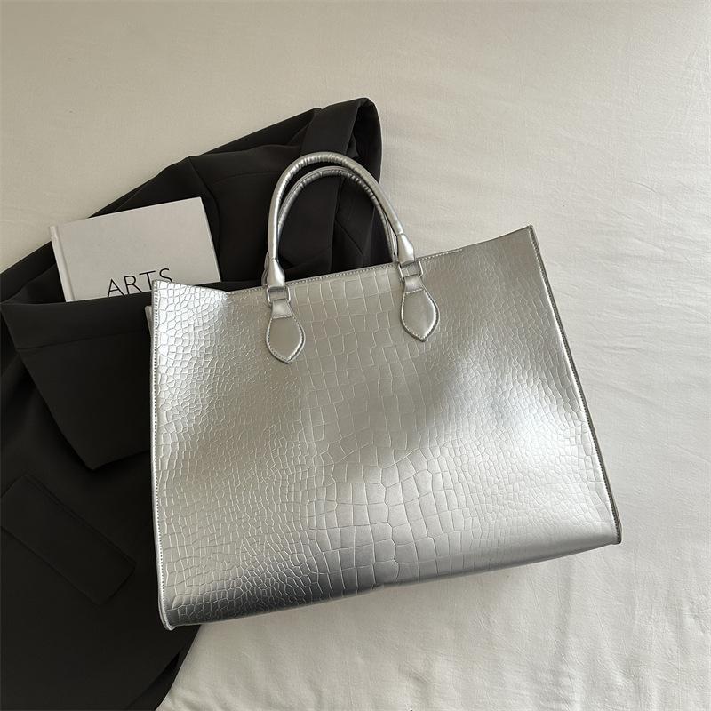 2025 весна и лето новая мода однотонный зарубежный стиль большая вместимость досуг новая тенденция простая портативная сумка-тоут серебряный