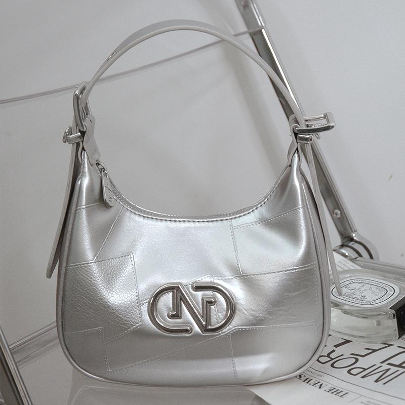 2025 весна и лето новая черная ПУ модная универсальная сумка через плечо женская сумка-полумесяц Length 20cm * Width 6.5cm * Height 20cm серебряный