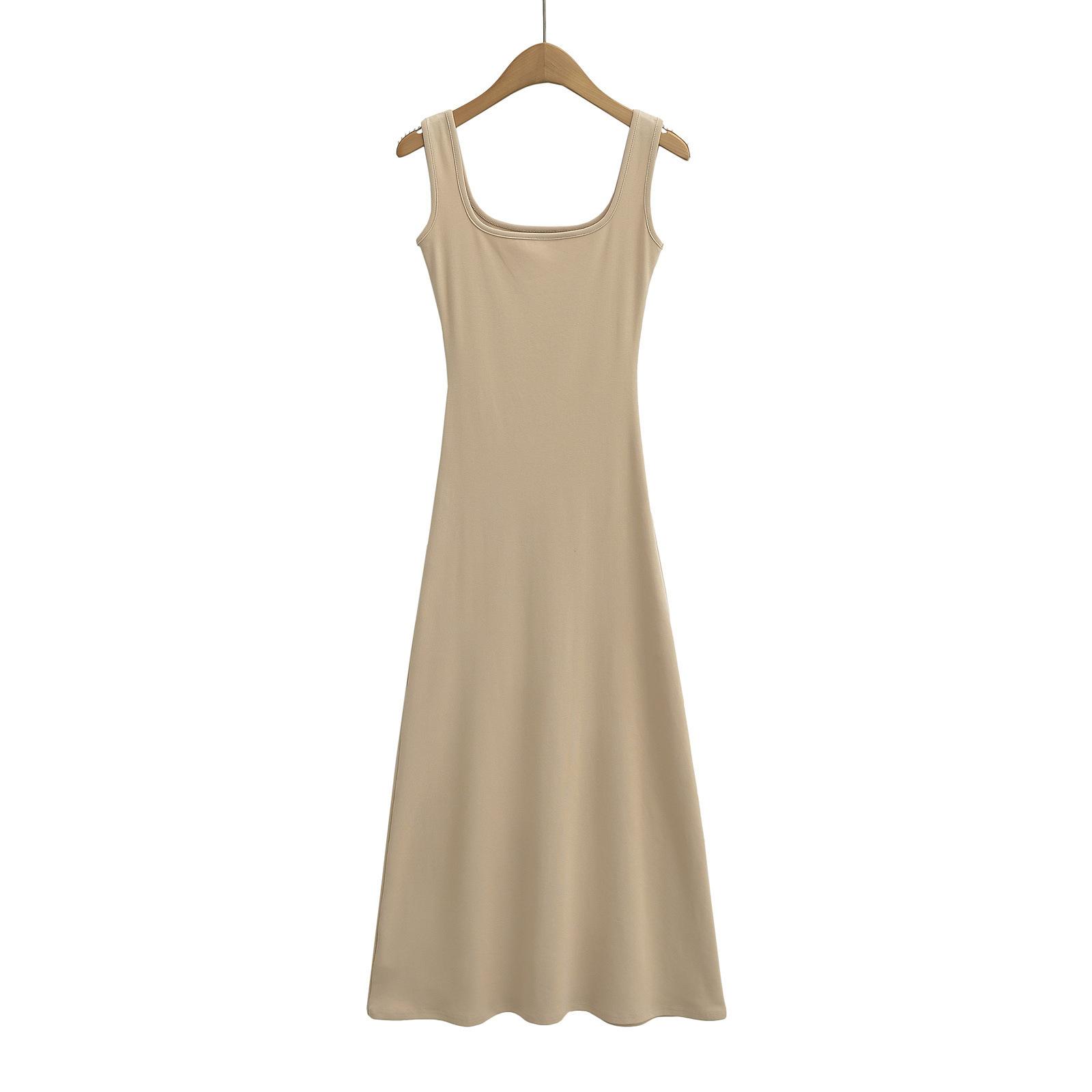 2025 женская новая эластичная талии с завязками юбка большого размера, пикантная девушка облегающая длинная юбка, широкий воротник, однотонное платье-жилет M хаки