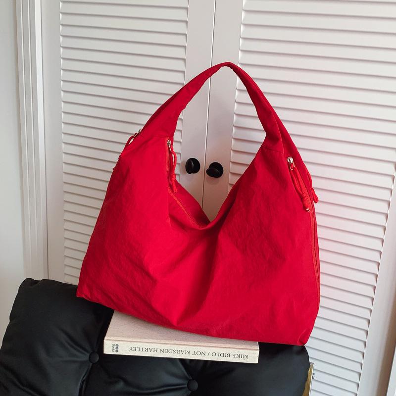 2025 женская сумка большой вместимости в стиле ленивый ветер, простая сумка через плечо, новая сумка-подмышка для通勤, модная сумка-тоут красный