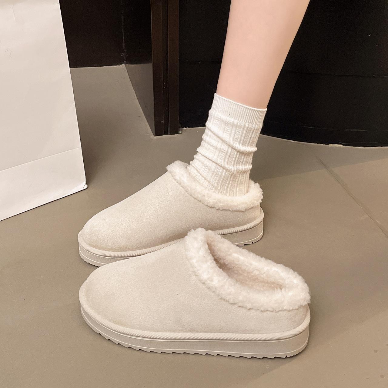 2025 зимняя сумка на голову полутапочки женские однотонные ретро овечья шерсть бархат теплые новые хлопковые туфли женские ноги 36