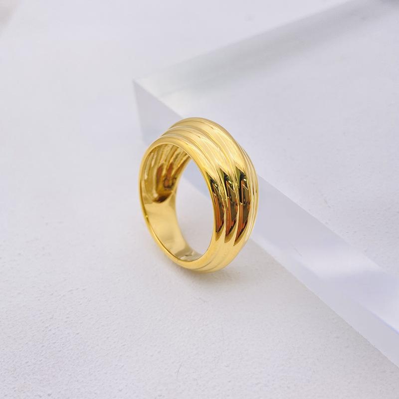 2025 лето новое клетчатое широкое кольцо кольцо женское простое модное латунное вакуумное покрытие настоящее золото No. 7
