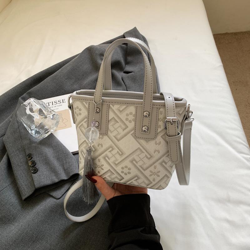 2025 лето новый национальный стиль вышивка новая китайская маленькая сумка женская мода простая ручная сумка-ведро сумка-мессенджер серый