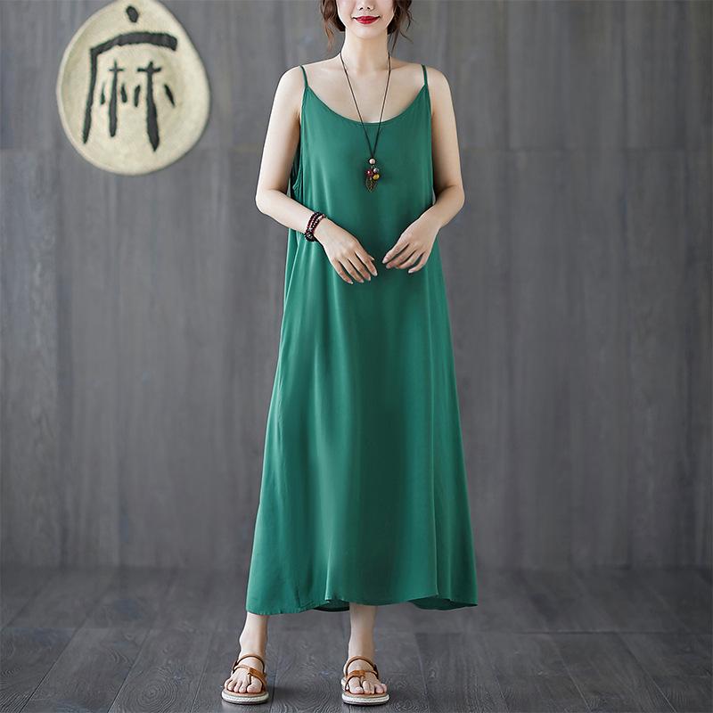 2025 лето новый нижний жилет с подтяжками юбка женская ретро свободная внутренняя часть с однотонным маленьким платьем с подтяжками average size темно-зеленого
