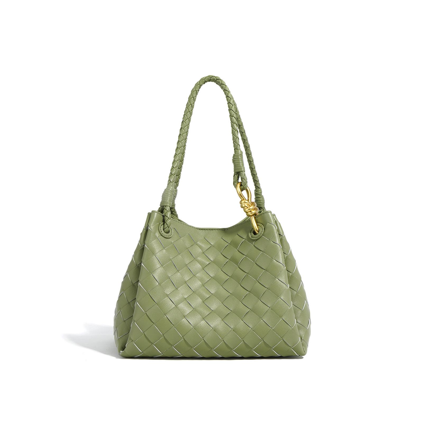 2025 натуральная кожа первый слой коровья кожа плетеная сумка новая сумка-ведро ретро стиль old money ветер сумка-корзина для овощей женская зелёный
