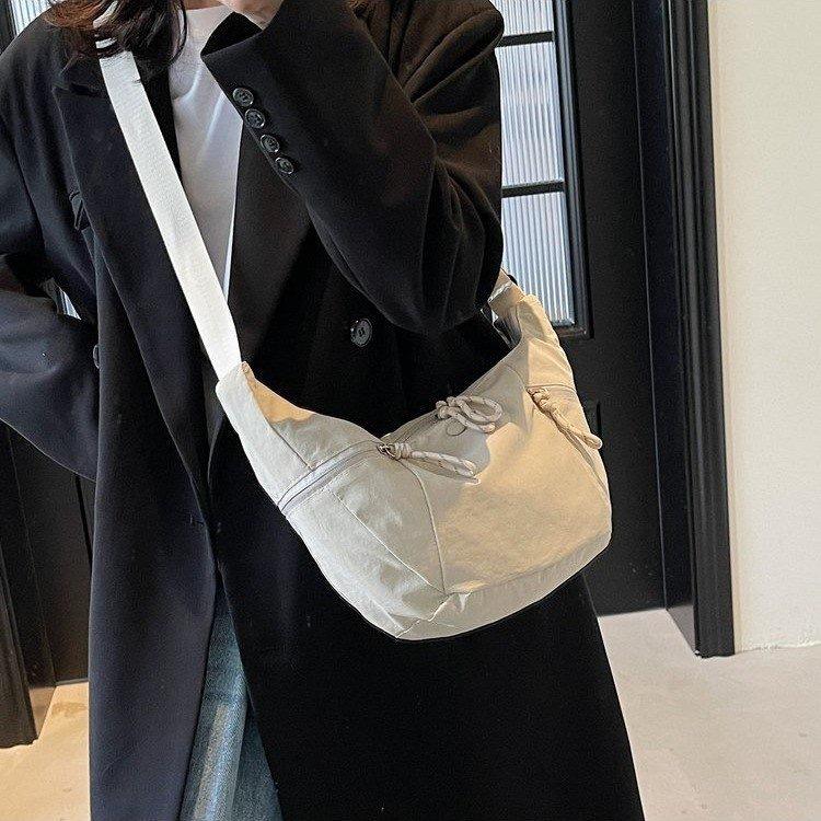 2025 новая легкая и вместительная повседневная женская сумка-мессенджер на плечо, спортивная универсальная сумка-пельмень для通勤 грязно-белый