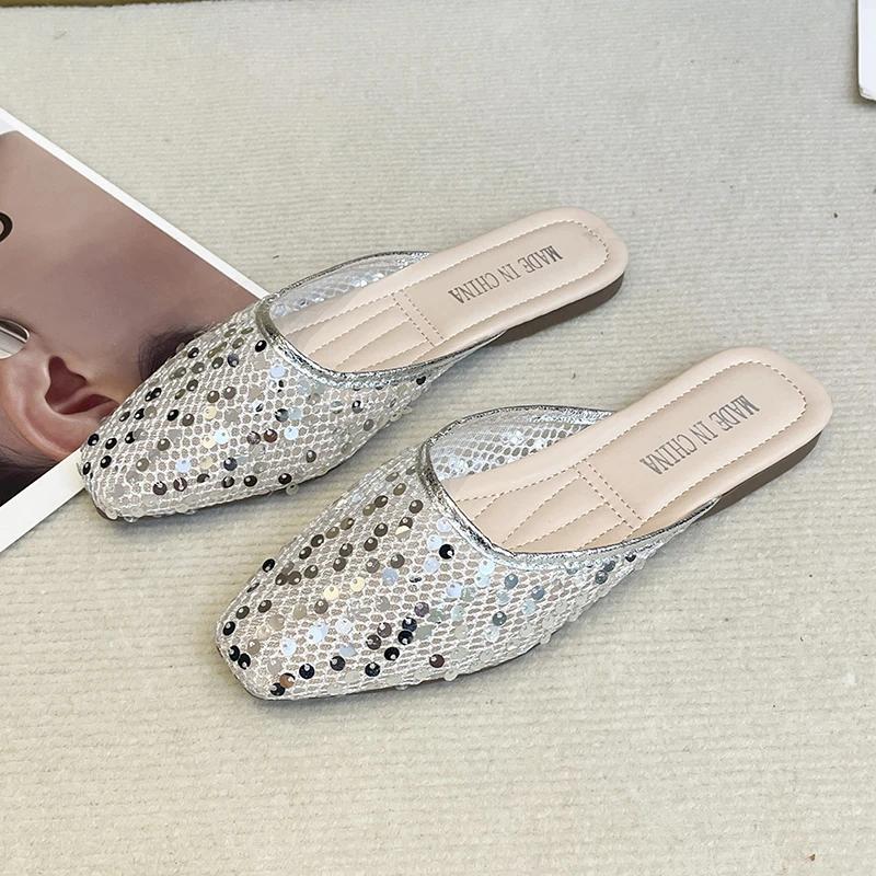 2025 новая летняя мода роскошные туфли на плоской подошве для вечеринок плоские слипоны повседневные удобные женские бриллиантовые шлепанцы 35 серебряный