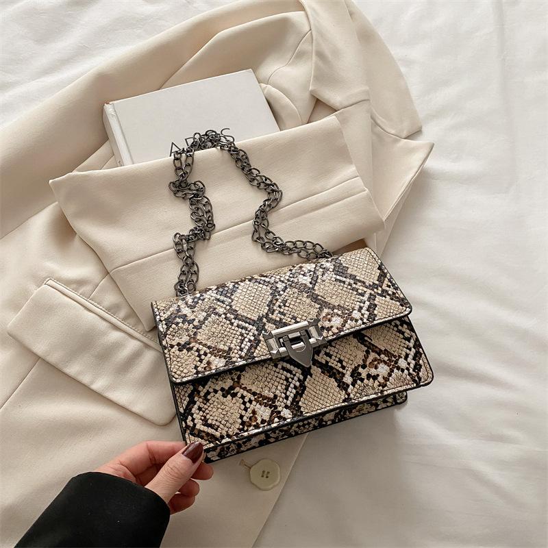 2025 новая мода змеиный узор с принтом цепи маленькая квадратная сумка личность темперамент сумка через плечо женская сумка продвинутый смысл хаки