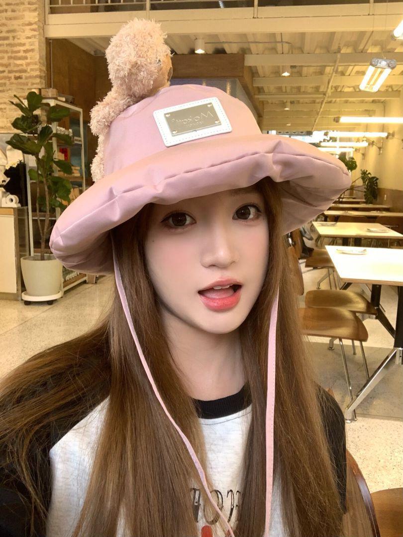2025 новая модная милая стандартная шляпа-ведро с буквами для женщин с объемным медведем, мягкая хлопковая легкая теплая холодная шляпа-ведро прилив M(56-58cm) розовый