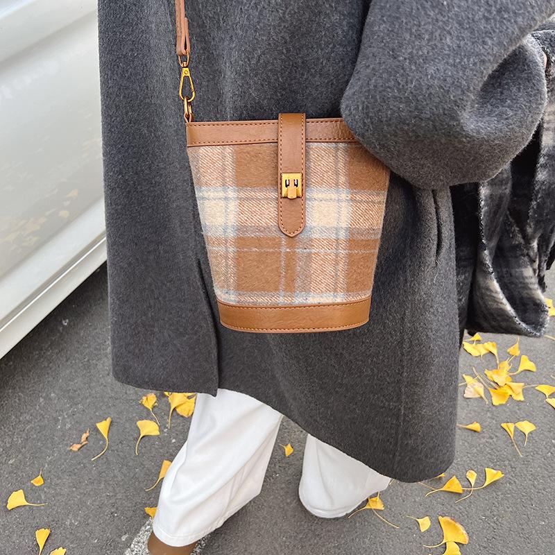 2025 новая нишевая ретро замшевая клетчатая портативная сумка-ведро на одно плечо, сумка-мессенджер для женщин 14*12*19
