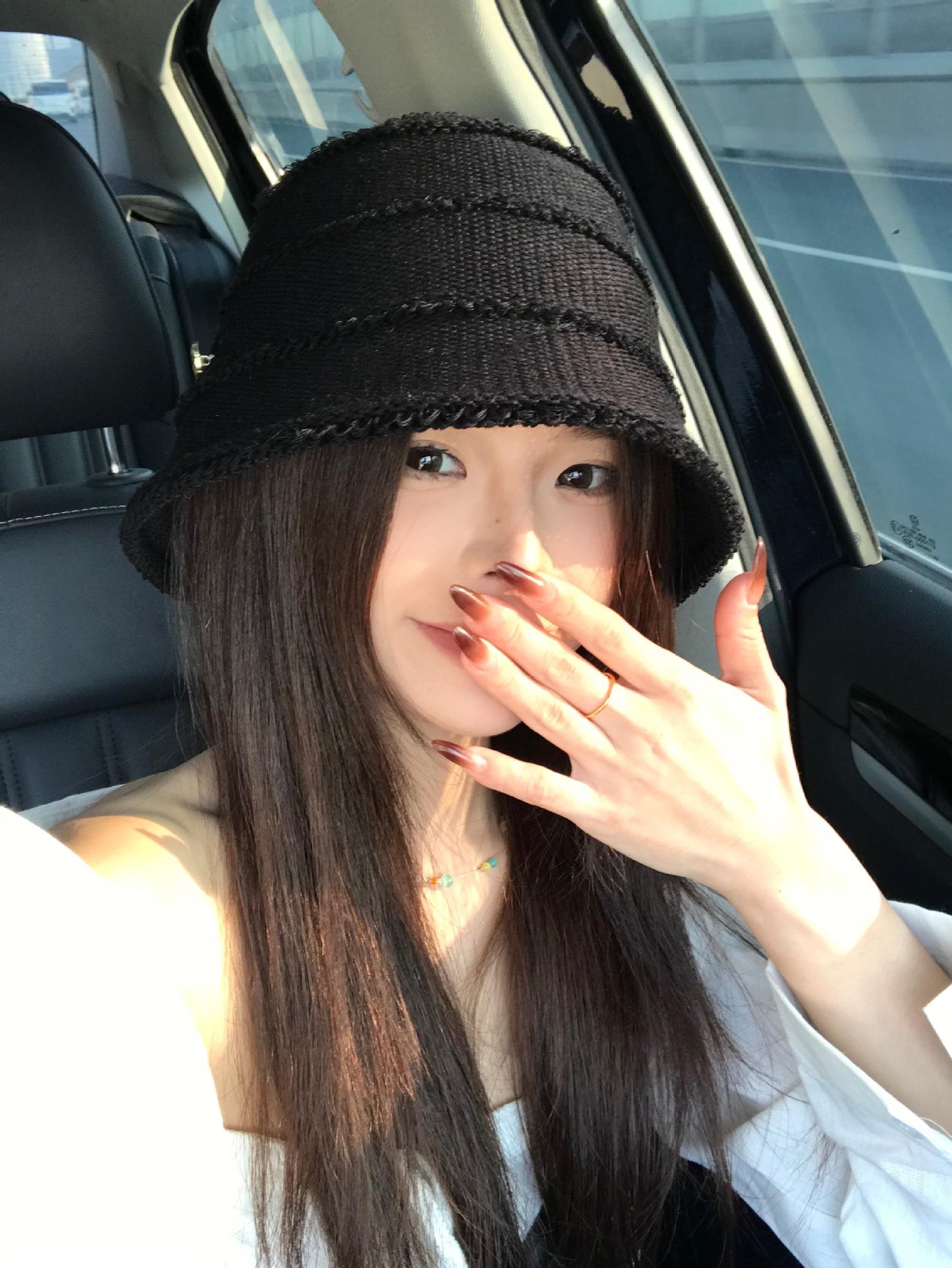 2025 новая осенне-зимняя полосатая вязаная панама женская, большой обхват головы, подчеркивающая лицо, маленькая панама из толстой пряжи M(56-58cm) чёрный