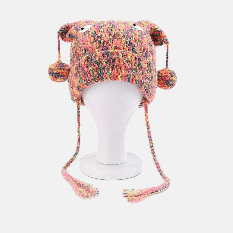 2025 новая осенне-зимняя теплая и холодная шапка для защиты ушей ручной работы из ниток, милая и забавная цветная шерстяная вязаная шапка для женщин M(56-58cm)