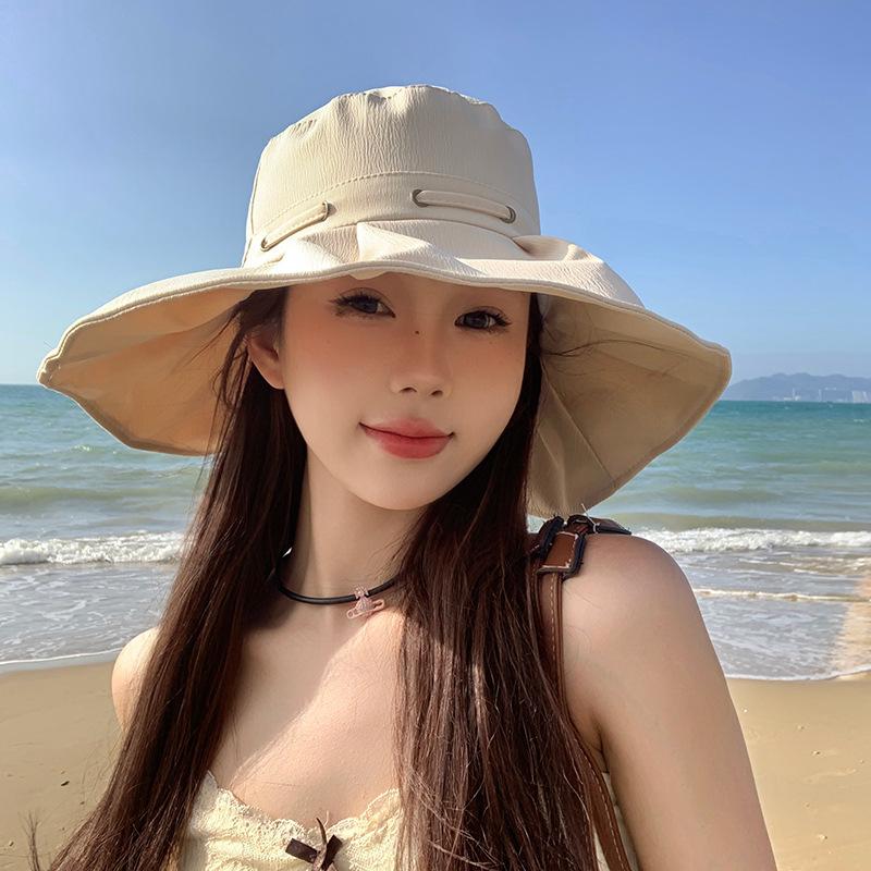 2025 новая панама с большими полями для защиты от солнца, женская шляпа от солнца, летняя шляпа от солнца, показывающая лицо, маленькая женская шляпа для защиты лица от ультрафиолета Adjustable (55-58cm) бежевый