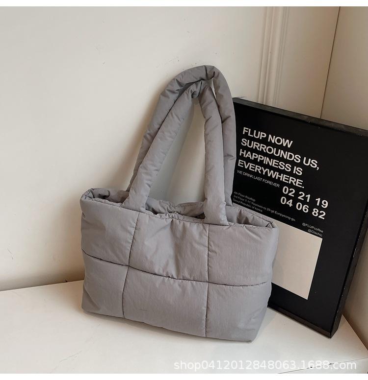 2025 новая повседневная пуховая хлопковая сумка женская корейская версия легкая и мягкая наплечная сумка большой вместимости сумка-тоут хлопковая сумка серый
