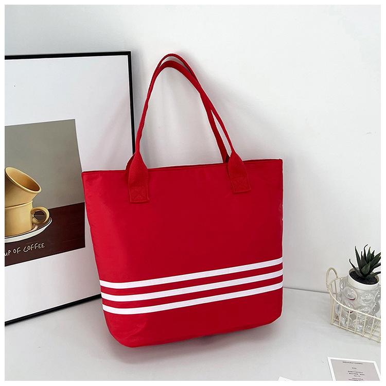 2025 новая сумка-тоут женская осенне-зимняя текстурная большая вместимость полосатая парусиновая портативная сумка-ведро на плечо красный