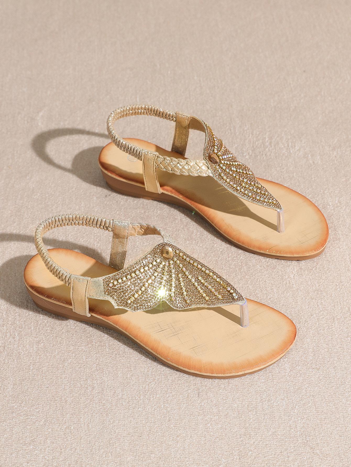 2025 новые женские сандалии на плоской подошве с защипами, тапочки со стеклянной водой и бриллиантами, женская обувь в стиле бохо 43 абрикосовый