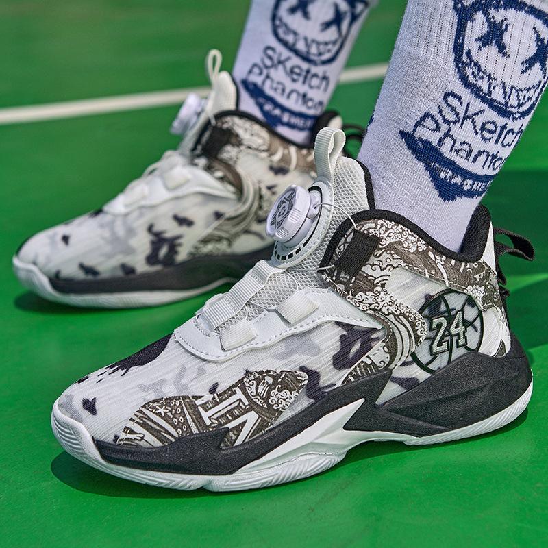 2025 новые кроссовки для баскетбола для начальной школы с вращающейся пряжкой, сетчатые спортивные кроссовки для мальчиков, тренировочные кроссовки для бега 40