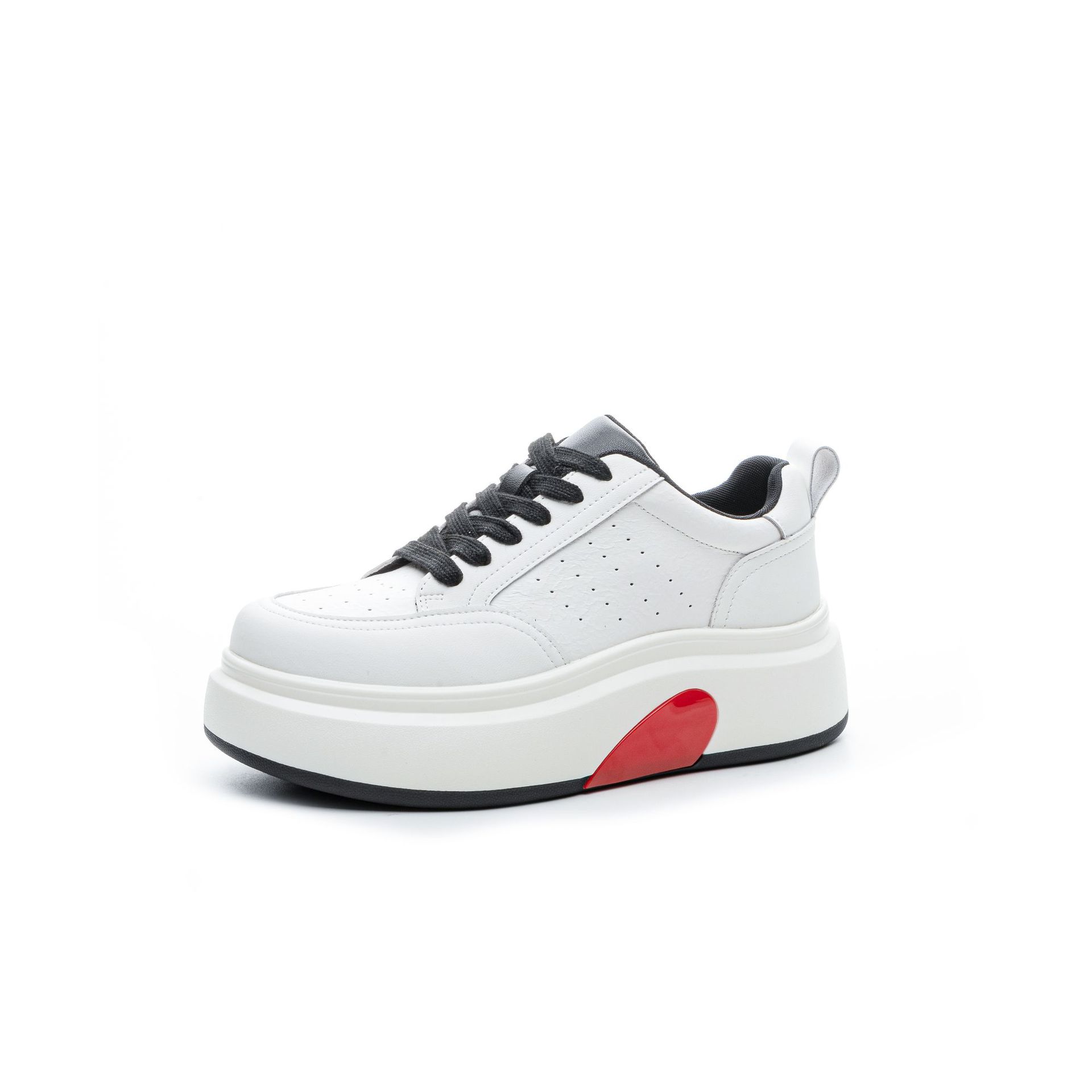 2025 осень и зима новые модные на толстой подошве увеличивающие рост маленькие белые туфли женские дышащие повседневные туфли любовь к спорту кожаные кеды женские 40 чёрный