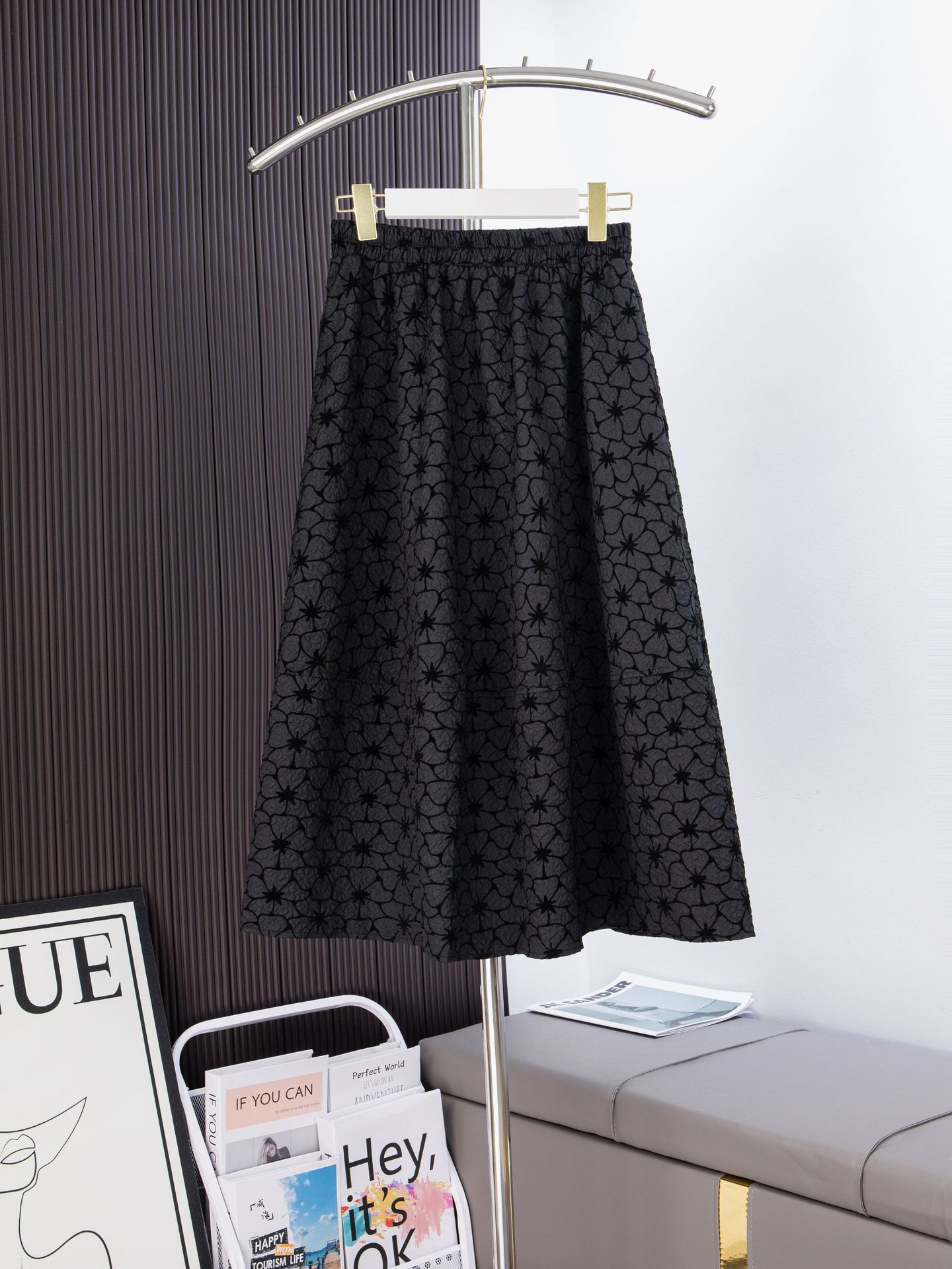 2025 осень новая юбка флокированный жаккард пузырь мятая юбка высокая талия тонкая юбка в стиле a word средние и длинные женские One Size