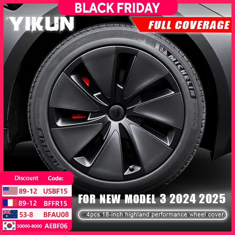 2025 For Tesla Model 3 Highland 18 Inch New Wheel Cap Performance Wheel Cover Wheel Part Full Rim 2024 Accessories 4PCS Hubcaps