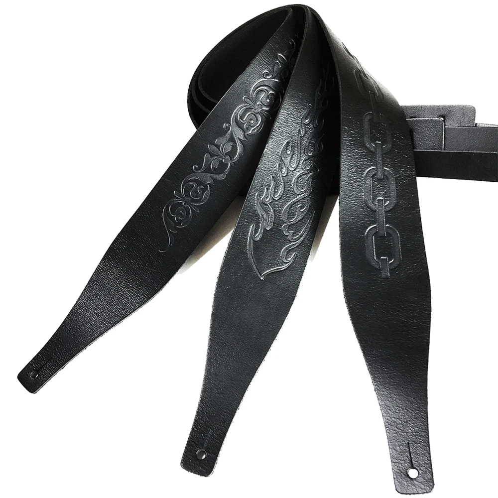 2025 High-End Single-Layer Genuine Cowhide Handmade Embossed Guitar Strap Music Accessory for Stringed Instruments