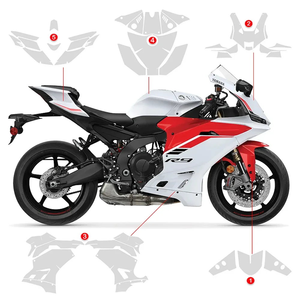 2025 YZF R9 Motorcycle TPU Paint Protective Film For YAMAHA YZF R9 Transparent Protection Film Healing Scratch Resistant