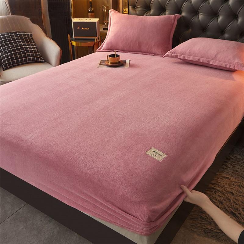 2026 Горячий Плюшевый Утолщенный Стеганый Лен Однотонная Фланелевая Постельная Простыня с Резинкой Простыня Кристальный Вельвет Наматрасник (нет наволочек) Bed sheet (180x200x25cm) розовый
