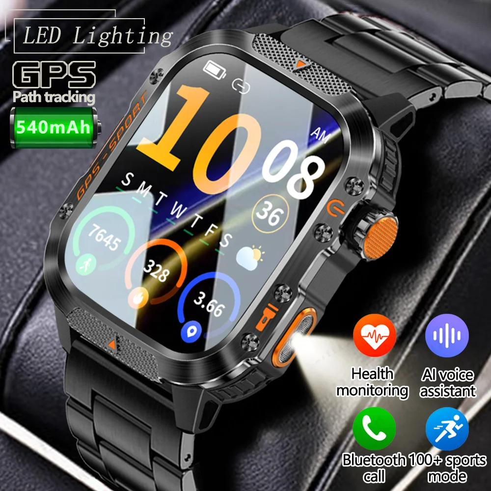 2026 NEW Men Outdoor Smart Watch Flashlight GPS Path Track Sport Mode Bluetooth Call 3ATM Waterproof SmartWatch For Android IOS