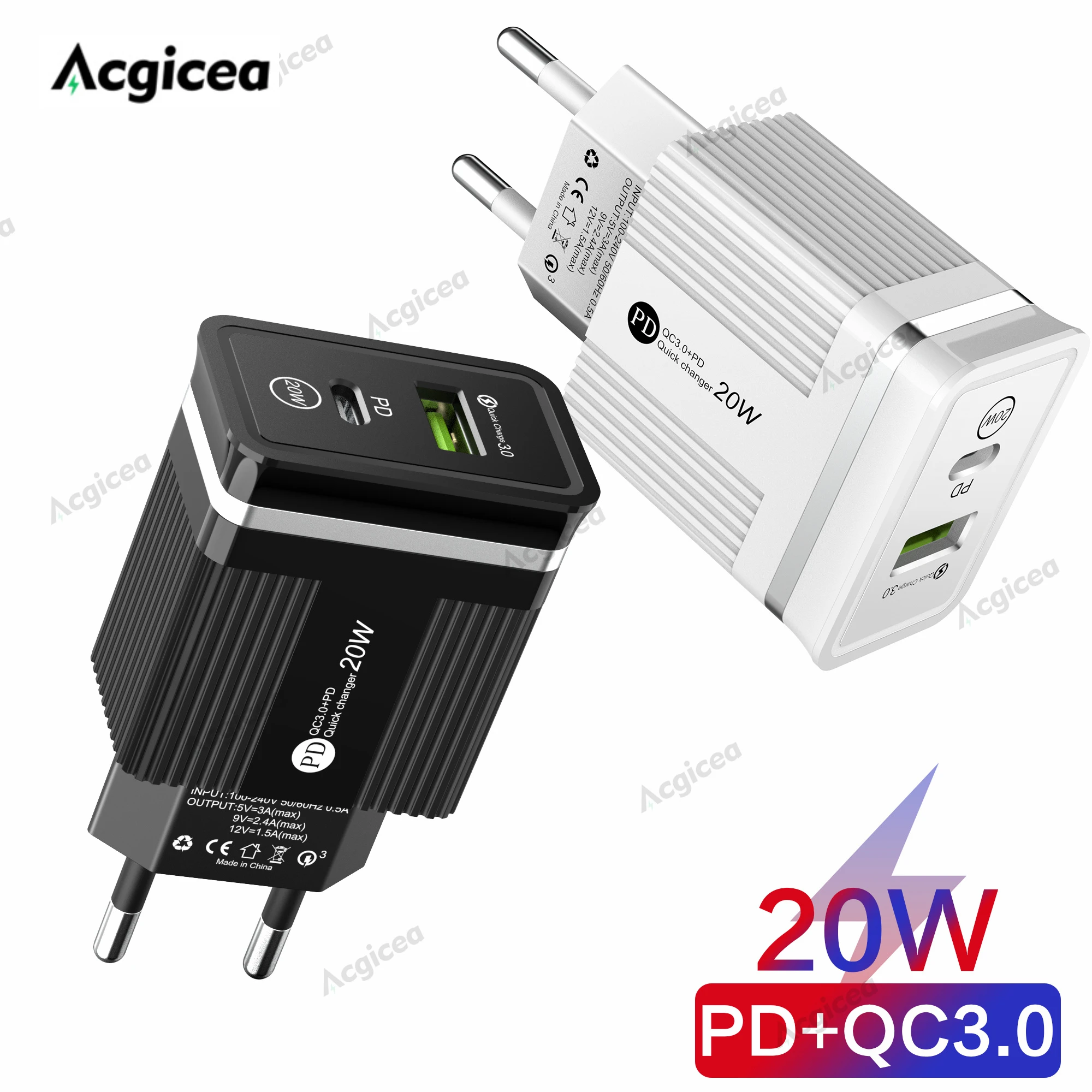 20W Dual USB Charger PD 3A Fast Charging For iPhone 13 12 Pro iPad Huawei Xiaomi Samsung Quick Charge Mobile PhoneTravel Adapter